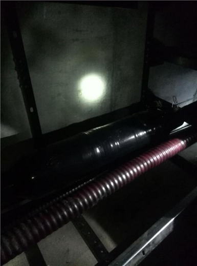 經(jīng)過測(cè)距設(shè)備檢測(cè)故障位置距離測(cè)試端30米。設(shè)備再次加壓,在故障位置明顯看到有燃弧現(xiàn)象,定位完畢。