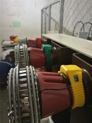 9月17日下午到達**能源公司,這個測溫系統(tǒng)需要安裝的有180個測溫點,2臺RM-C3000G接收主機和 1臺RM-C3000E接收主機。本次工程訂貨安裝非常緊急,客戶要求所有測溫點必須在19日0時前安裝完成。其中有5個柜子特別緊急必須在17日21時點之前必須完成。根據(jù)客戶要求進行柜號排列,并做記錄,然后按順序找出10KV配電室這5個開關(guān)柜對應(yīng)的測溫點序號進行安裝。小車推出后發(fā)現(xiàn)觸頭為倒錐形,合金片收緊困難,溫度探頭難以安裝,施工人員克服種種困難,保質(zhì)保量并提前2小時完成,主機全部接收到已安裝探頭的溫度數(shù)據(jù)。