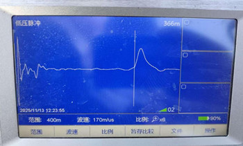 1、使用測(cè)距儀低壓脈沖測(cè)量,電纜全長(zhǎng)366米。如圖所示